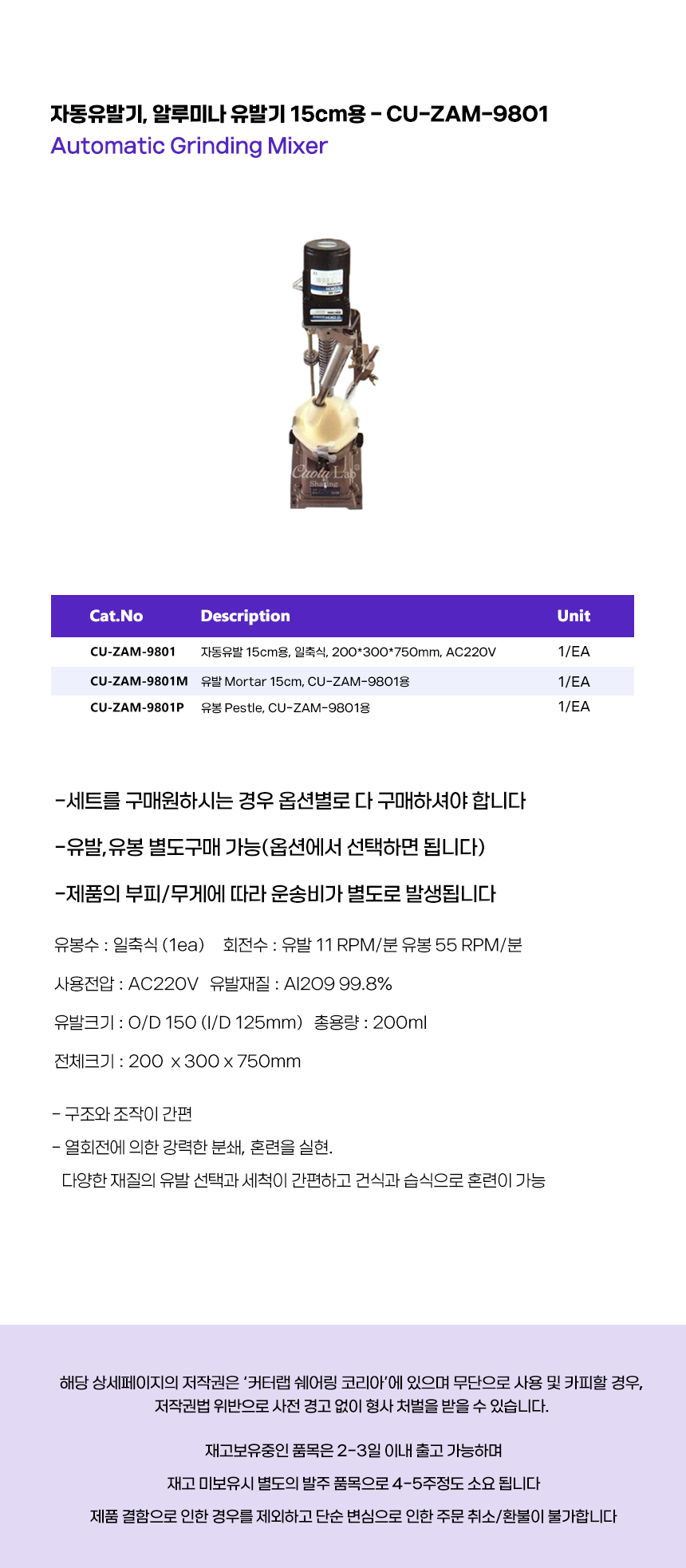 자동유발기, 알루미나 유발기 15cm용 (Automatic Grinding Mixer)