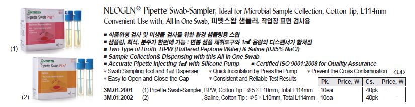 Convenient Use with, All In One Swab, 피펫스왑 샘플러, 작업장 표면 검사용
