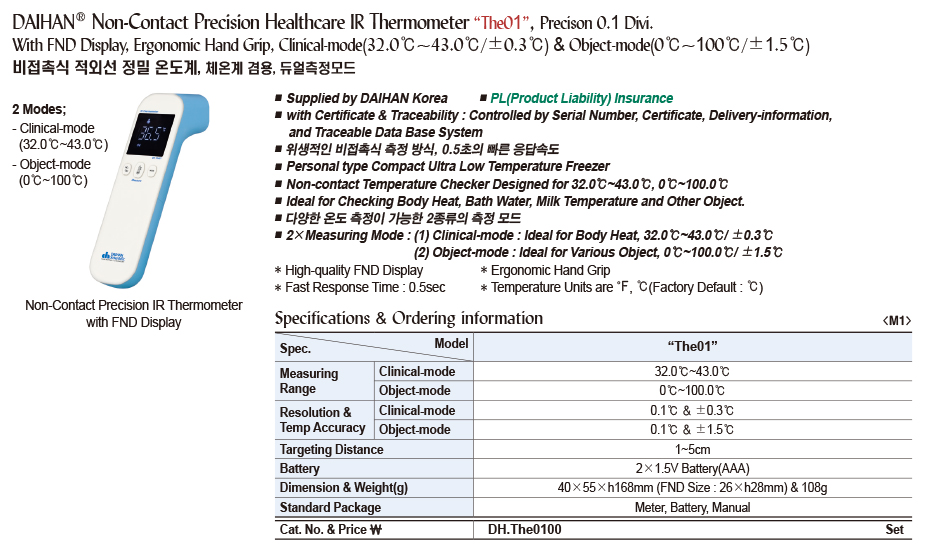 DAIHAN® Non-Contact Precision Healthcare IR Thermometer “The01”, Precison 0.1 Divi.