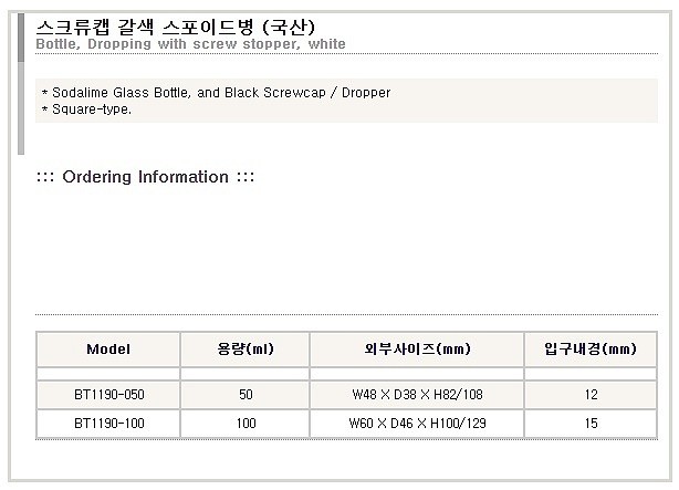 용액을 보관 및 쉽게 적은양을 드롭핑 할 수 있도록 스포이드가 부착된 병