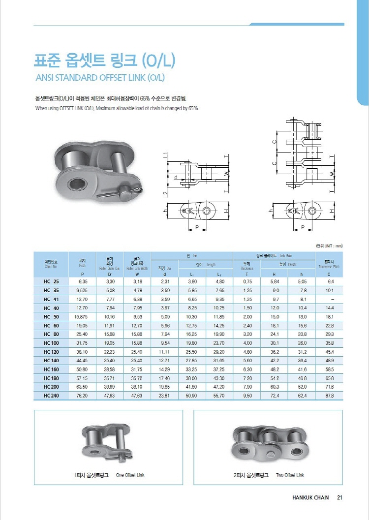 [한국체인] 표준 옵셋링크 O/L (1열)
