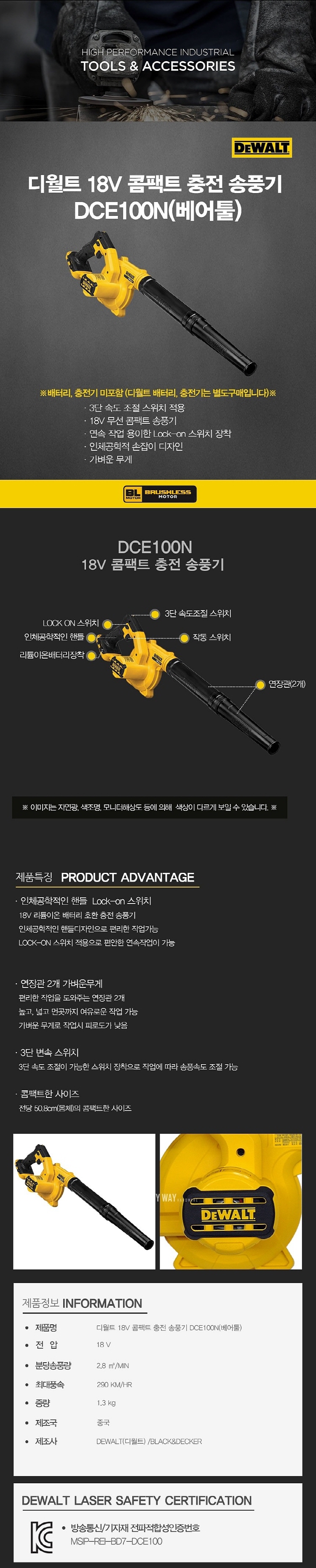 [디월트] 충전 송풍기 (DCE100N / 베어툴)