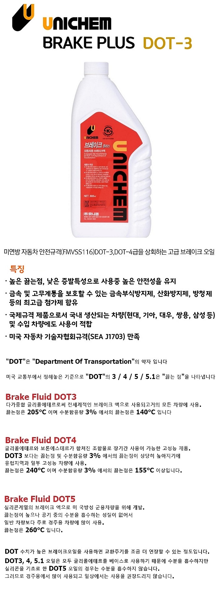 [유니켐] 브레이크 오일 (DOT 3)