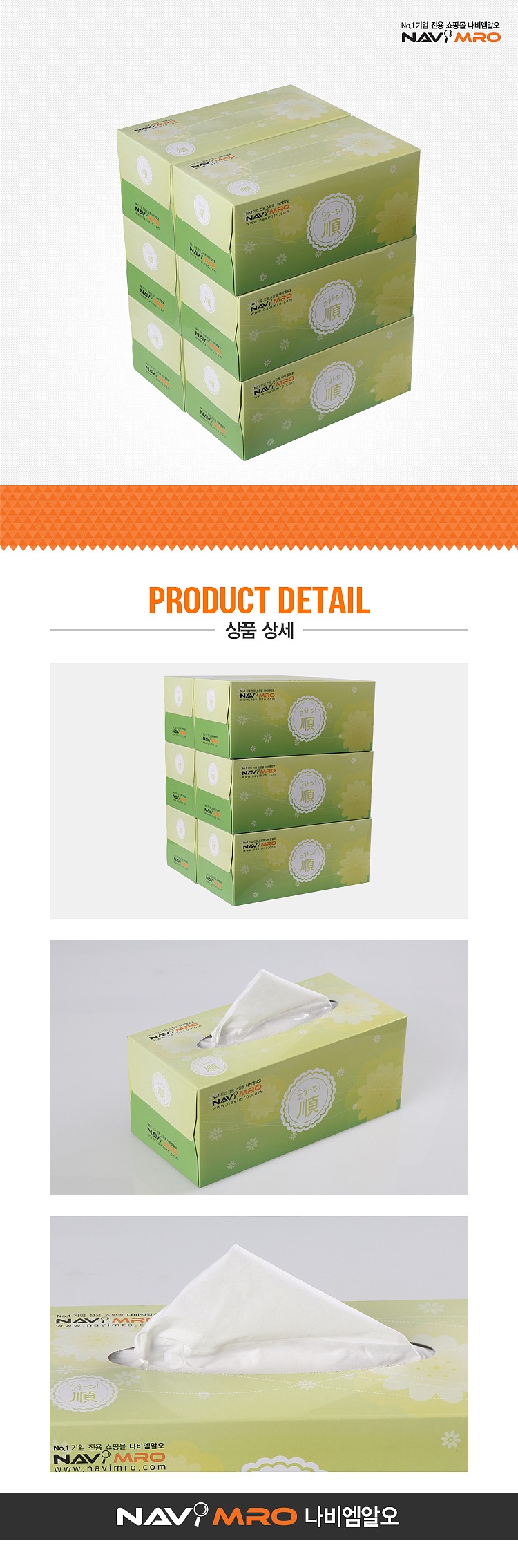100% 천연펄프를 사용하여 먼지 발생이 적고 부드러움이 우수한 최고급 미용티슈