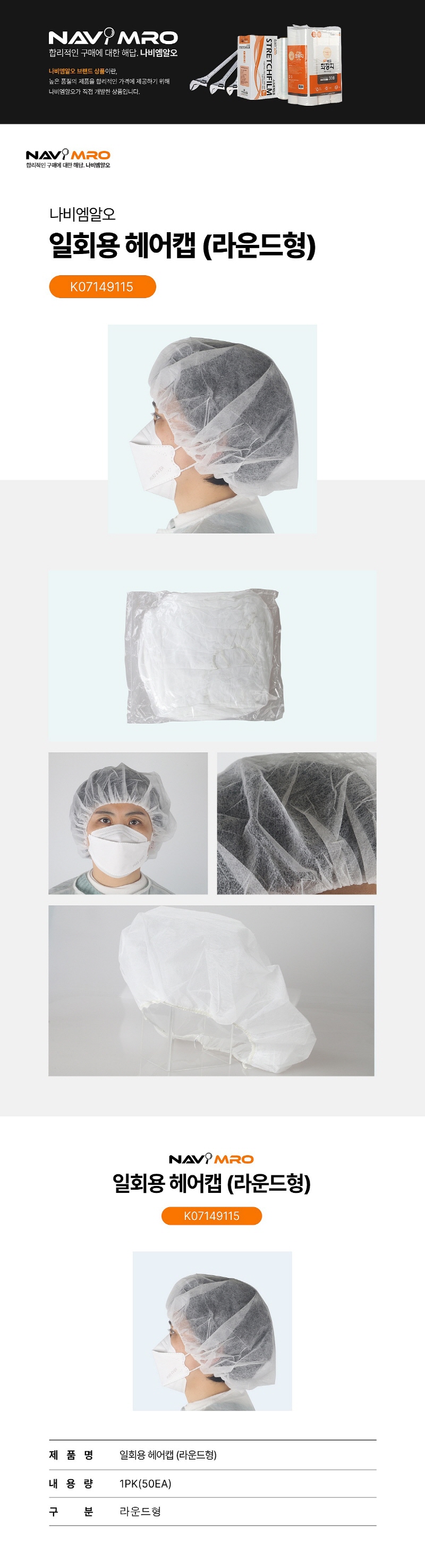 [나비엠알오] 일회용 헤어캡 (라운드형)