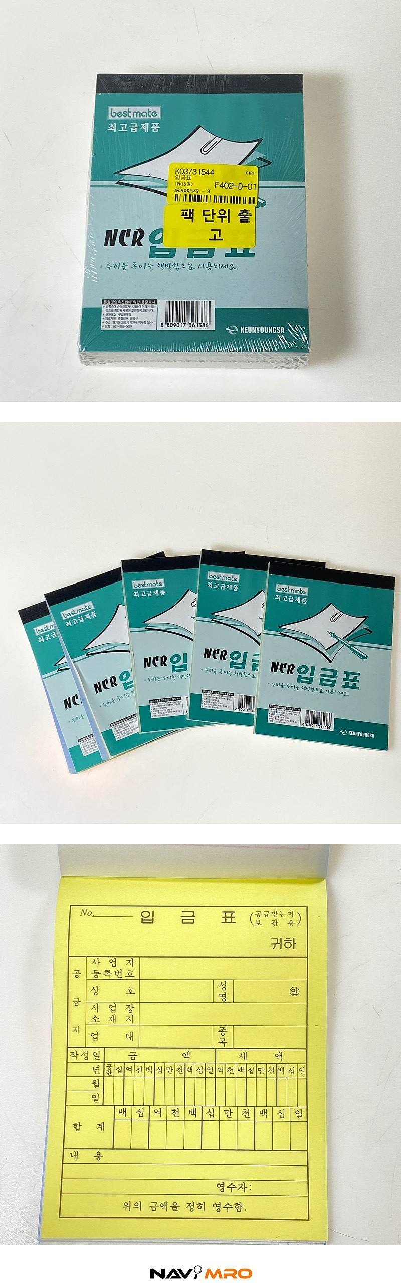 NCR 및 카본 입금표는 사용시 반드시 책받침을 넣고 사용