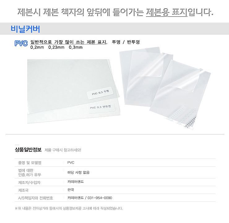 앞뒤 양면에 사용하시거나, 앞표지만 PVC 표지를 사용하시고 뒷면은 바이로닉 표지나 옥스포드 표지를 사용하시면 더욱 좋음
