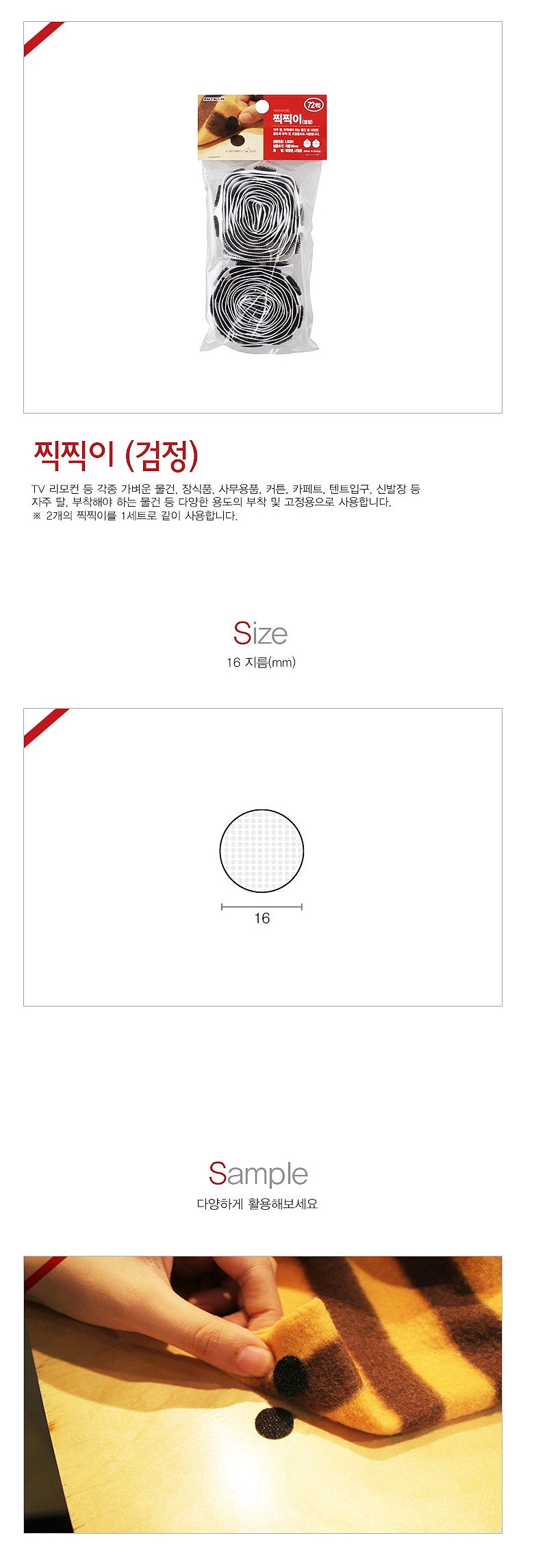2개의 찍찍이를 1세트로 같이 사용함