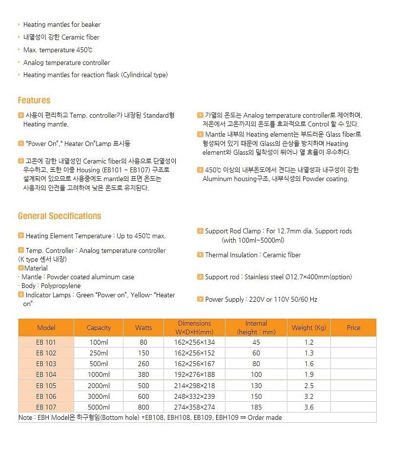 이중 Housing (EB101 ~ EB107) 구조로 설계되어 사용중에도 mantle의 표면 온도는 사용자의 안전을 고려하여 낮은 온도로 유지