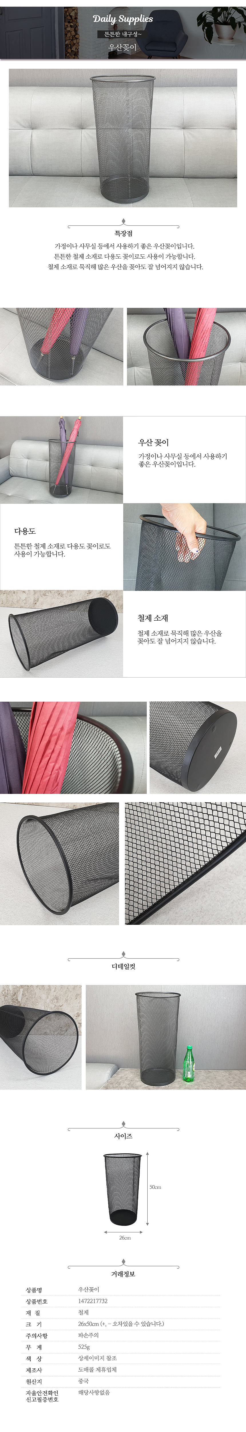철제 소재로 묵직해 많은 우산을 꽂아도 잘 넘어지지 않음