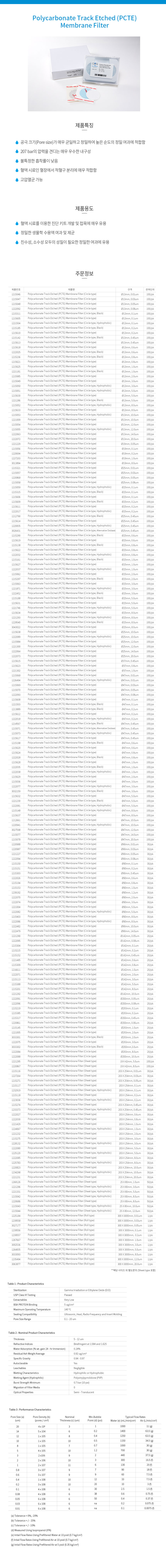 공극 크기(Pore size)가 매우 균일하고 정밀하여 높은 순도의 정밀 여과에 적합함