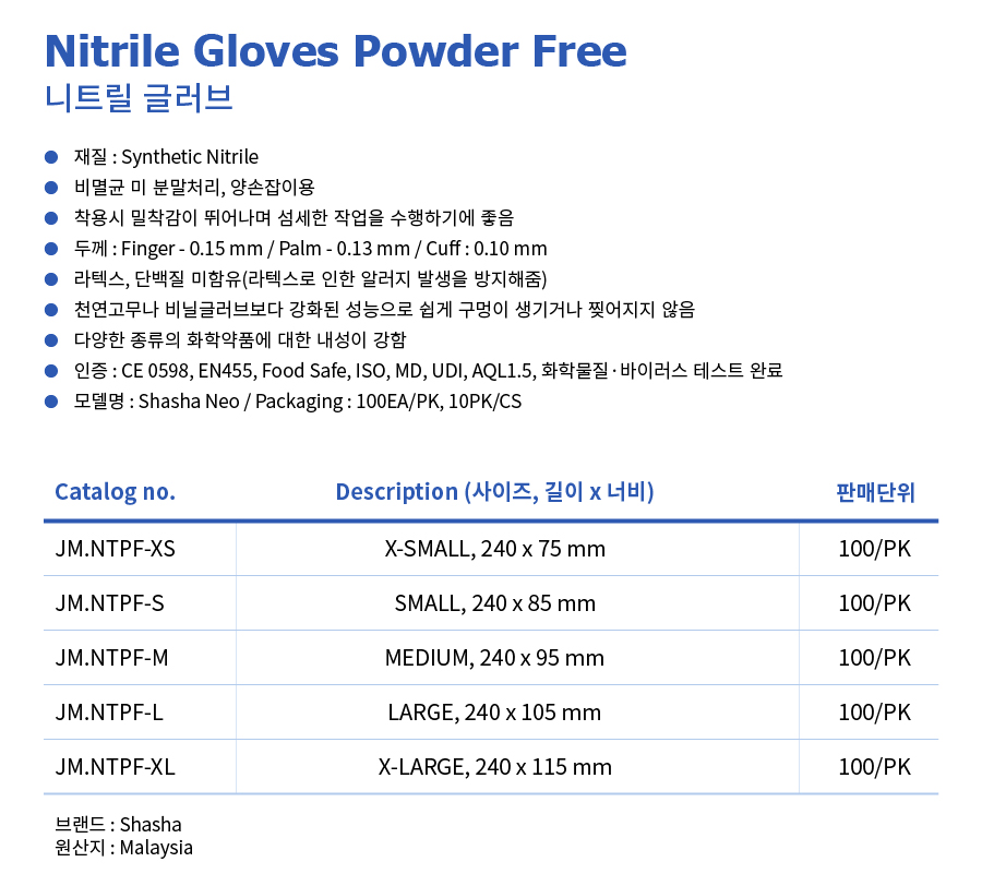 - 기준카테고리 : 니트릴 실험장갑