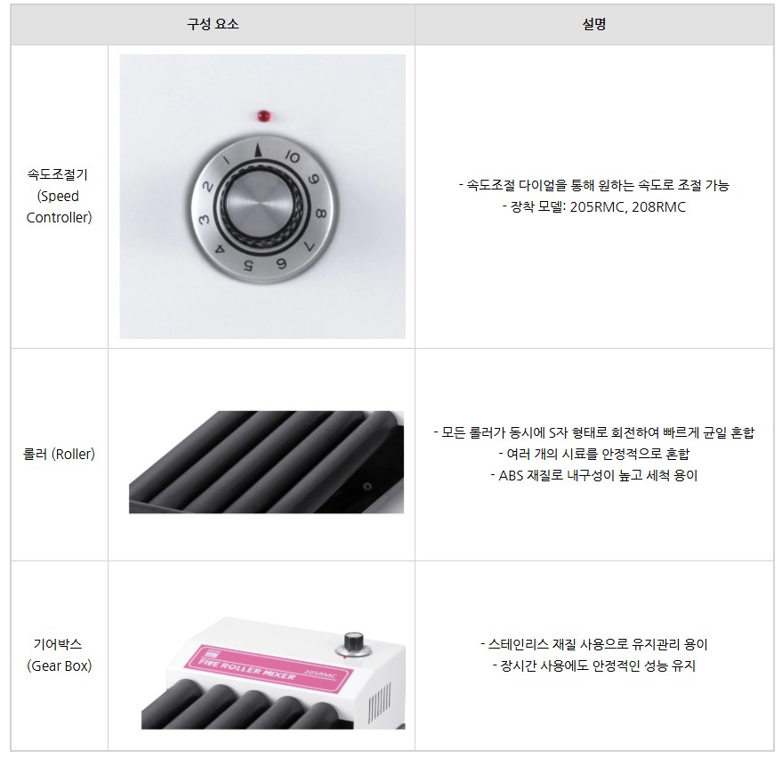 Roller가 S자 회전형으로 움직이며 여러 개 시료를 동시에 혼합 가능