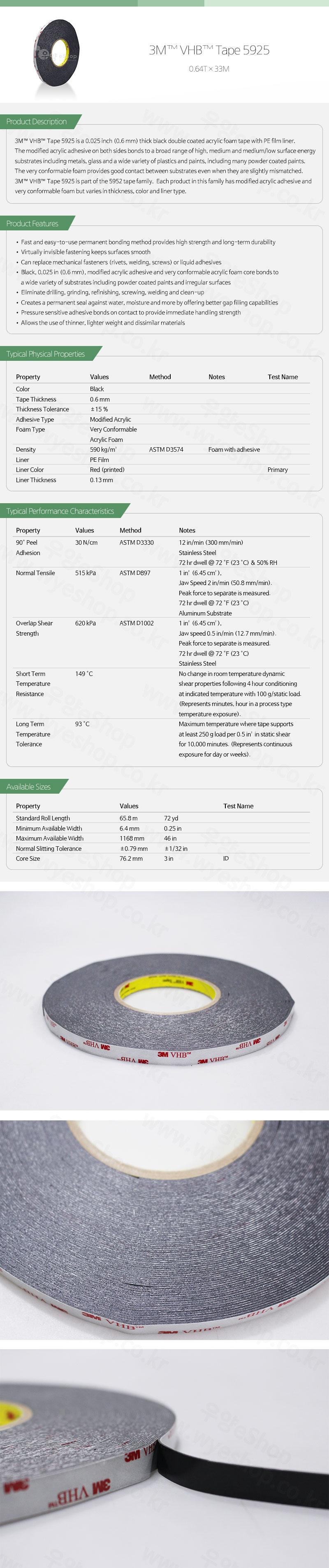 3M 5925 VHB 초강력 흑색 아크릴 폼 양면테이프