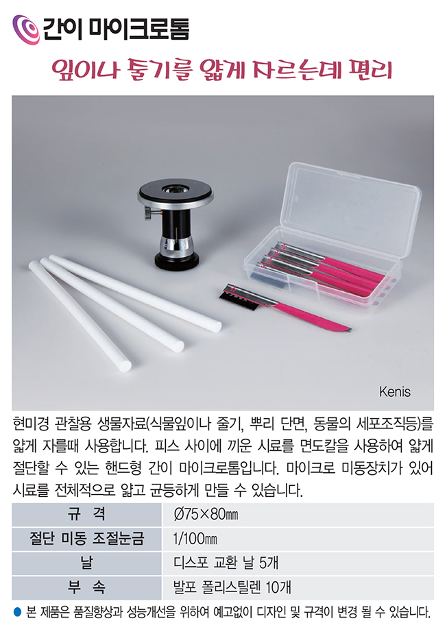 현미경 관찰용 생물 시료를 얇게 절단하는 핸드형 간이 마이크로톰입니다.