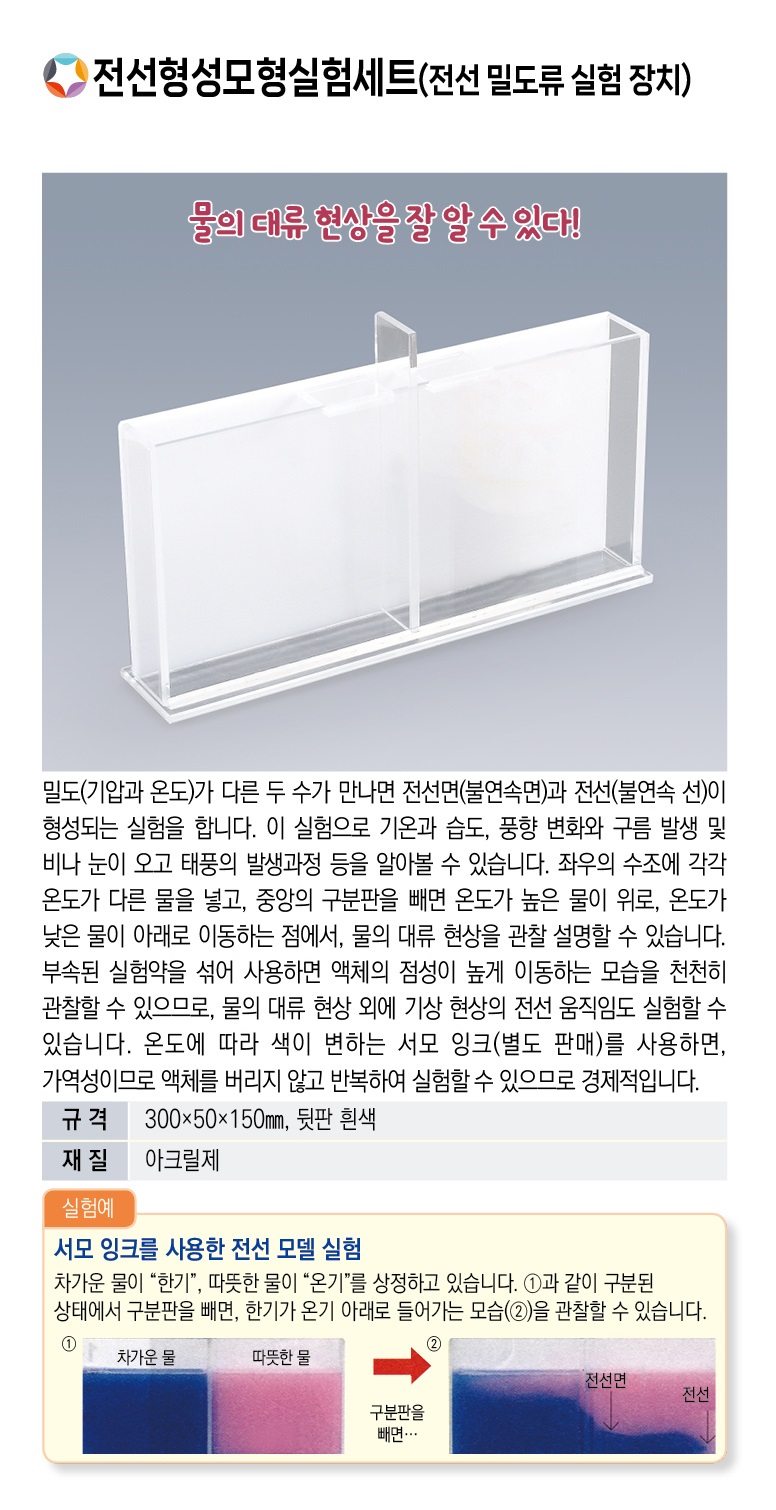 전선 형성 모형 실험 세트 전선 밀도류 온도 기압 유체 이동 관찰 키트 VLS-5463