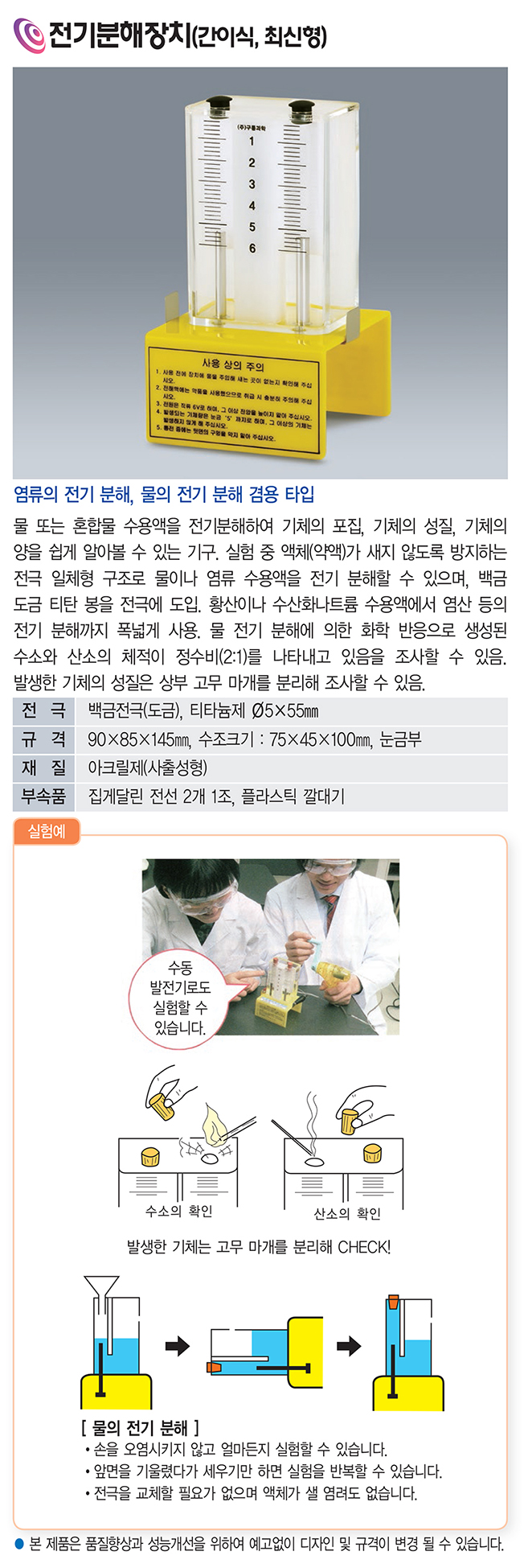간이식 최신형 전기 분해 장치 물 전기분해 수소 산소 발생 관찰 과학교구 VLS-4081