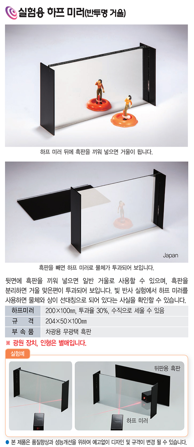 실험용 하프 미러 반투명 거울 실험용 광학실험 반사 굴절 광학 원리 실험기 VLS-3968