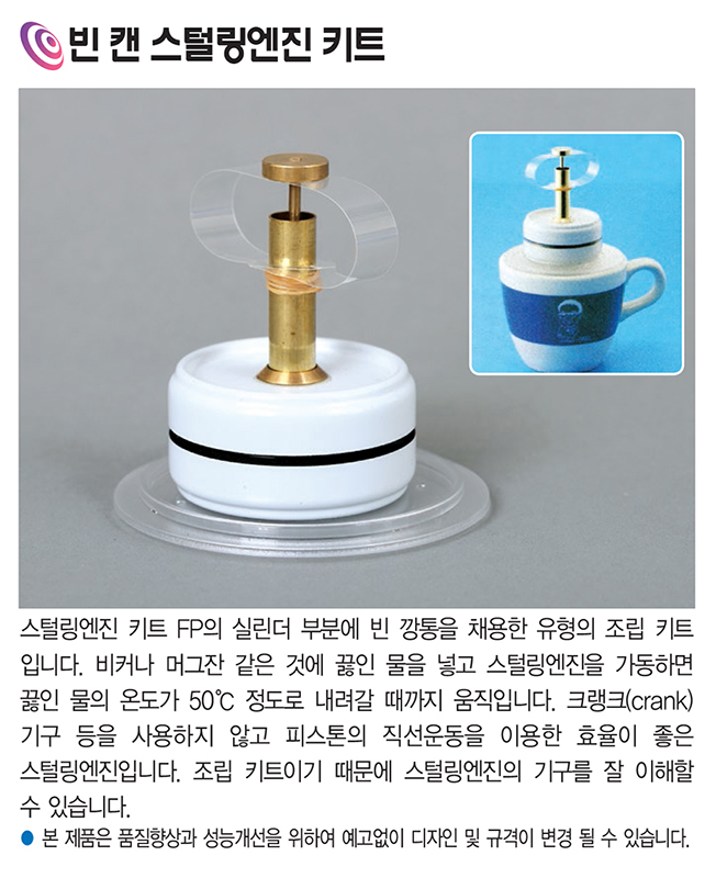 빈 캔 스털링엔진 키트는 실린더 내부를 빈 깡통으로 구성한 조립형 스털링엔진입니다.