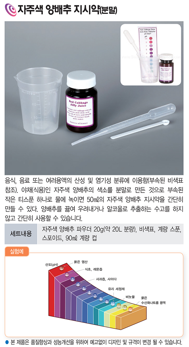 분말형 자주색 양배추 지시약 pH 측정 산성 염기성 실험 키트 VLS-4382