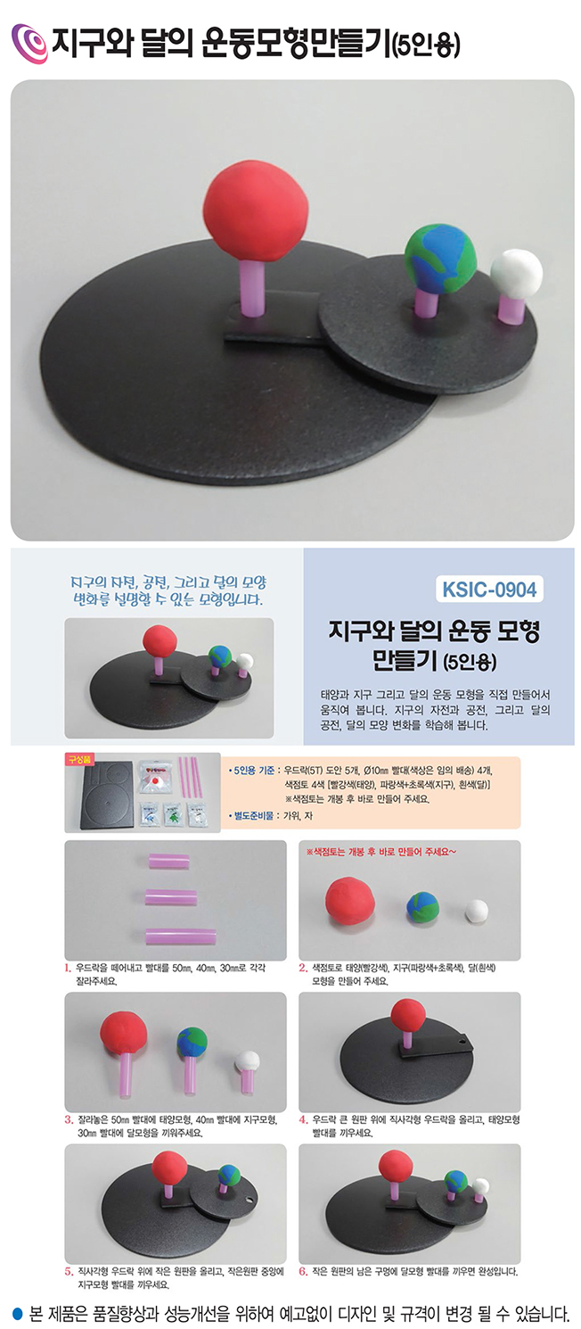 개요 : 태양과 지구 그리고 달의 운동 모형을 직접 만들어서 움직여 봅니다. 지구의 자전과 공전, 그리고 달의 공전, 달의 모양 변화를 학습해 봅시다.