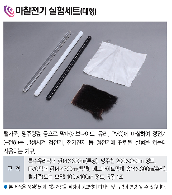 마찰전기 실험세트 대형 PVC 유리 에보나이트 막대 포함 정전기 실험세트 VLS-3902