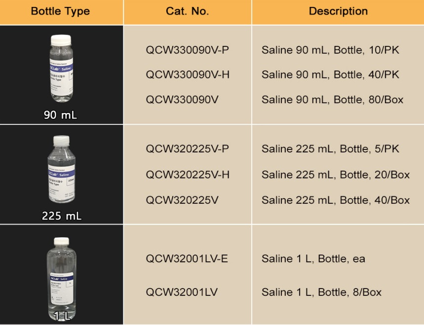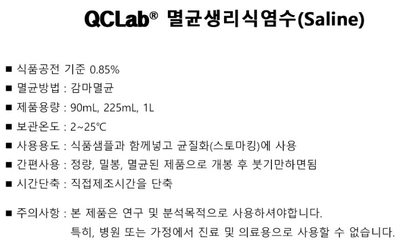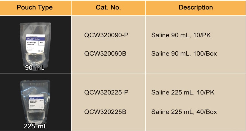 | 320225-P | QCLab 멸균생리식염수 225ml (#320225-10X) | pouch | 10ea/pk |