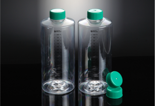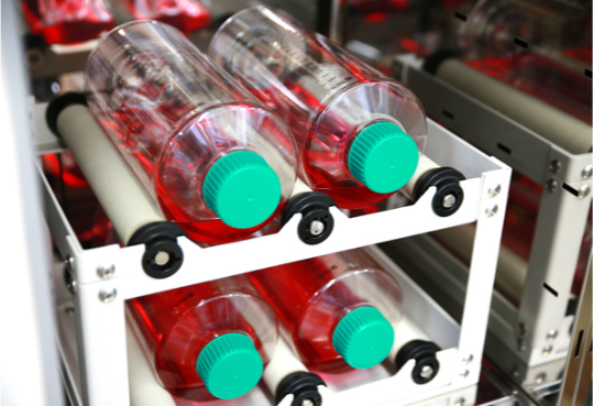 원통 형태의 Roller Bottle을 저속 회전 배양 방식을 통해 사용하게 되면 큰 표면적에 최소화된 배양액을 사용할 수 있어 대량 생산이 매우 효율