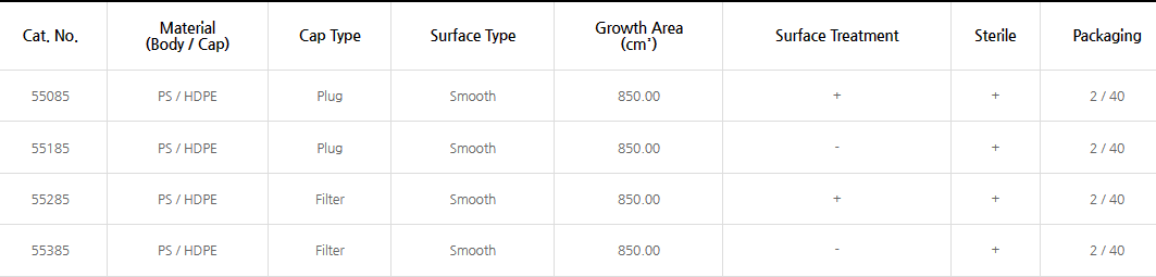 ▪ Suspension cell culture용 제품 (Cat. No. 55185, 55385)
