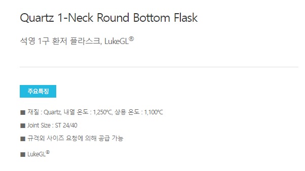 Quartz 1-Neck Round Bottom Flask / 석영 1구 환저 플라스크, LukeGL®