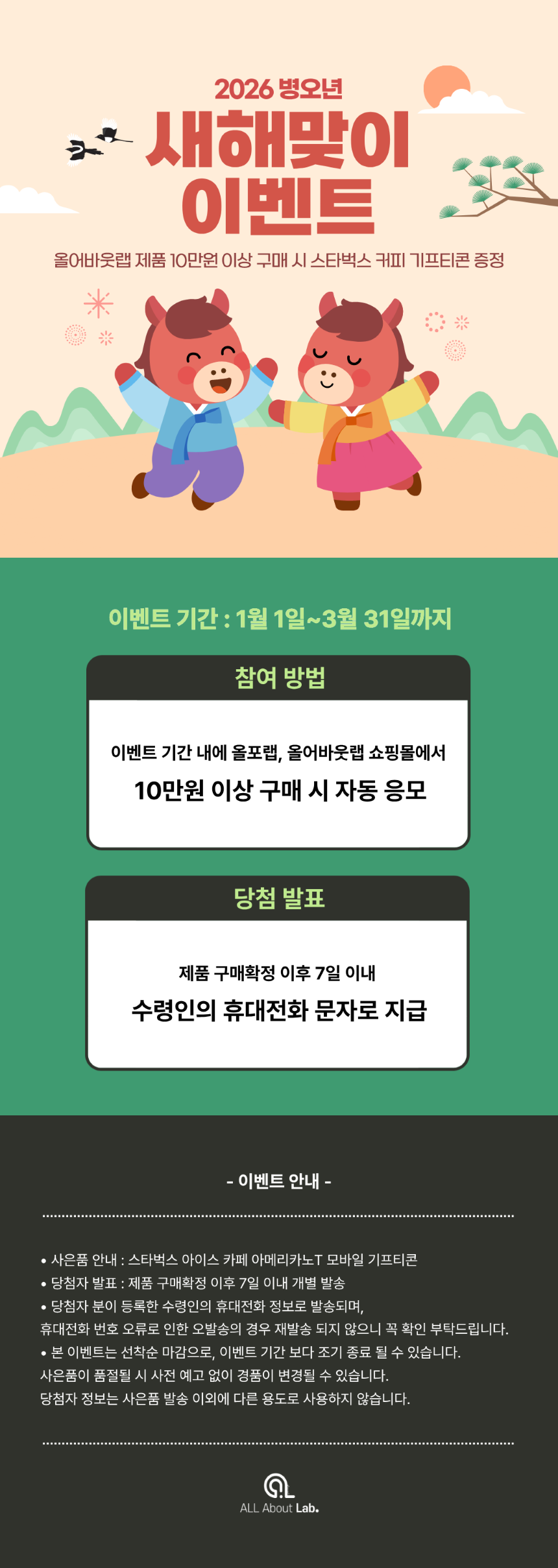 - 주문금액 50,000원 이상 : 운임비 올어바웃랩 부담 (단, 택배배송 불가능 상품은 고객부담)
