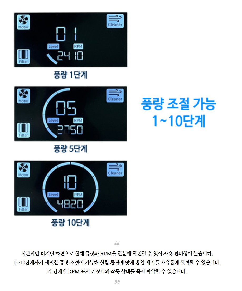 컴팩트한 크기와 이동성으로 공간 활용성이 뛰어나며, 배기기 파워 및 운전시간 설정 기능을 지원합니다.