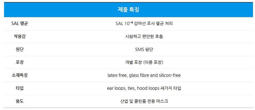 또한 라텍스·유리섬유·실리콘이 포함되지 않은 SMS 원단으로 제작되어