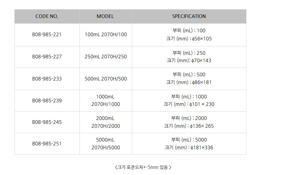 재질 : 본체 / 붕규산 유리, 캡 / 씰 링 / PP (폴리 프로필렌)