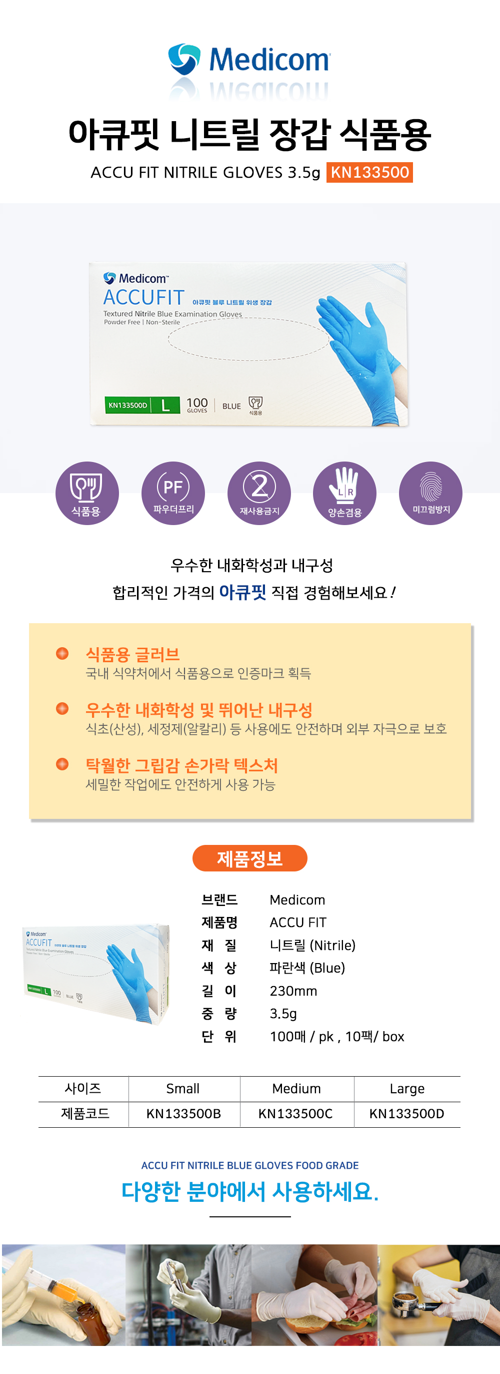 [Medicom] 133500 ACCU FIT Nitrile Gloves 3.5g, 아큐핏 니트릴 글러브(1186 대체상품)