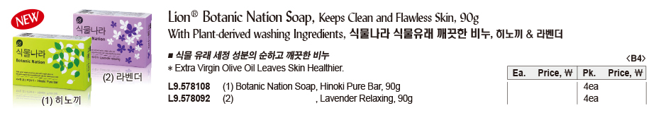 Lion® Botanic Nation Soap, Keeps Clean and Flawless Skin, 90g With Plant-derived washing Ingredients, 식물나라 식물유래 깨끗한 비누, 히노끼 & 라벤더