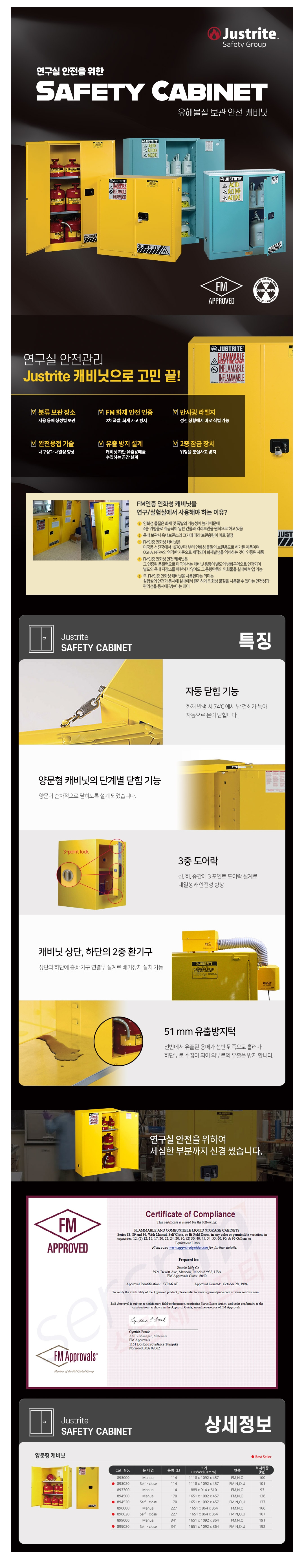 JUSTRITE (FM) 인화성물질 안전보관 캐비닛. All Purpose