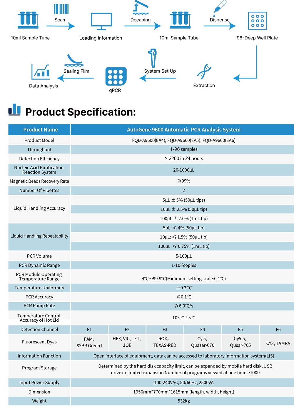 PCR plate loading, and PCR amplification detection. It achieves a seamless flow from sample input to result output,