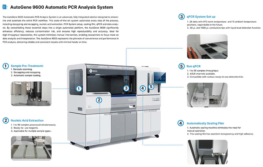 It automates the entire process of nucleic acid testing, covering functions such as opening and closing of sample lids,