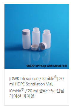 ■ LSC 전용 20mL 바이알, 유리/플라스틱 재질, 안정적 방사능 측정용.