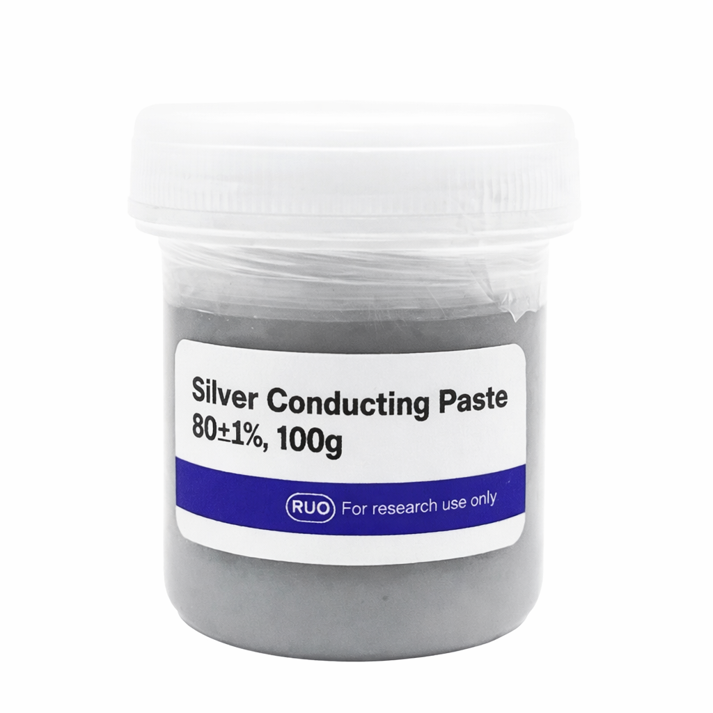 은 전도성 페이스트는 은 함량 80±1%, 순도 99.9% 이상의 고순도 Ag 기반 전도성 소재입니다. 우수한 전기전도성과 안정적인 점도를 갖추고 있어 전극 형성, 전자부품 접합, 태양전지 및 반도체 연구, 회로 보수 작업에 폭넓게 사용됩니다. 연구·산업용으로 적합한 100g 포장 제품입니다.