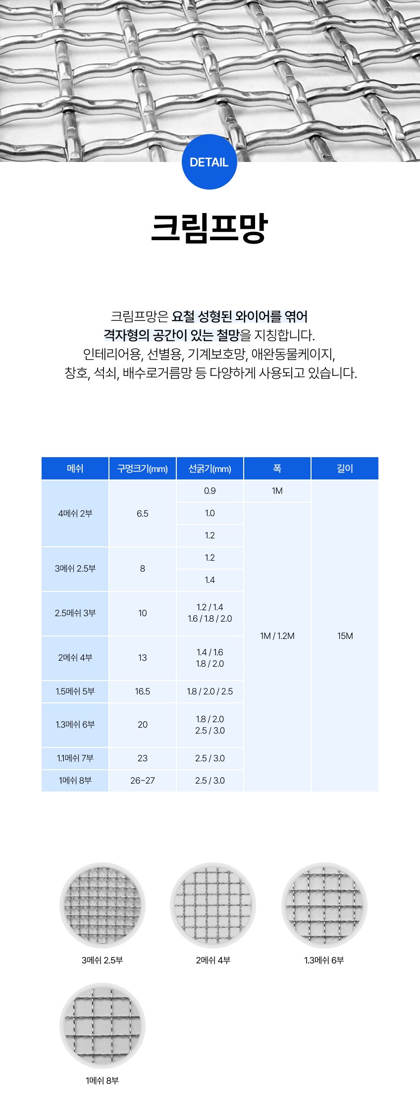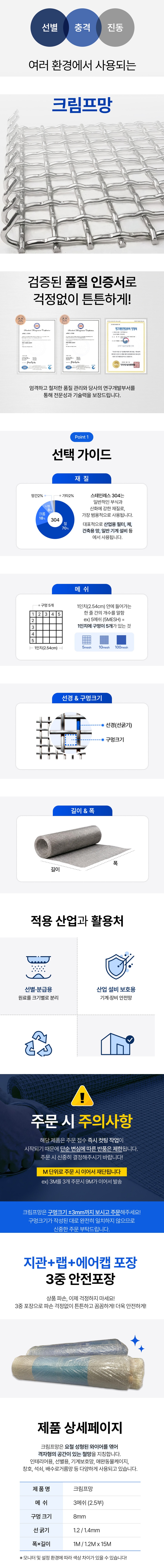 크림프망 서스304 와이어 철망 석쇠 동물케이지용 폭1m 길이15m 3메시2.5부