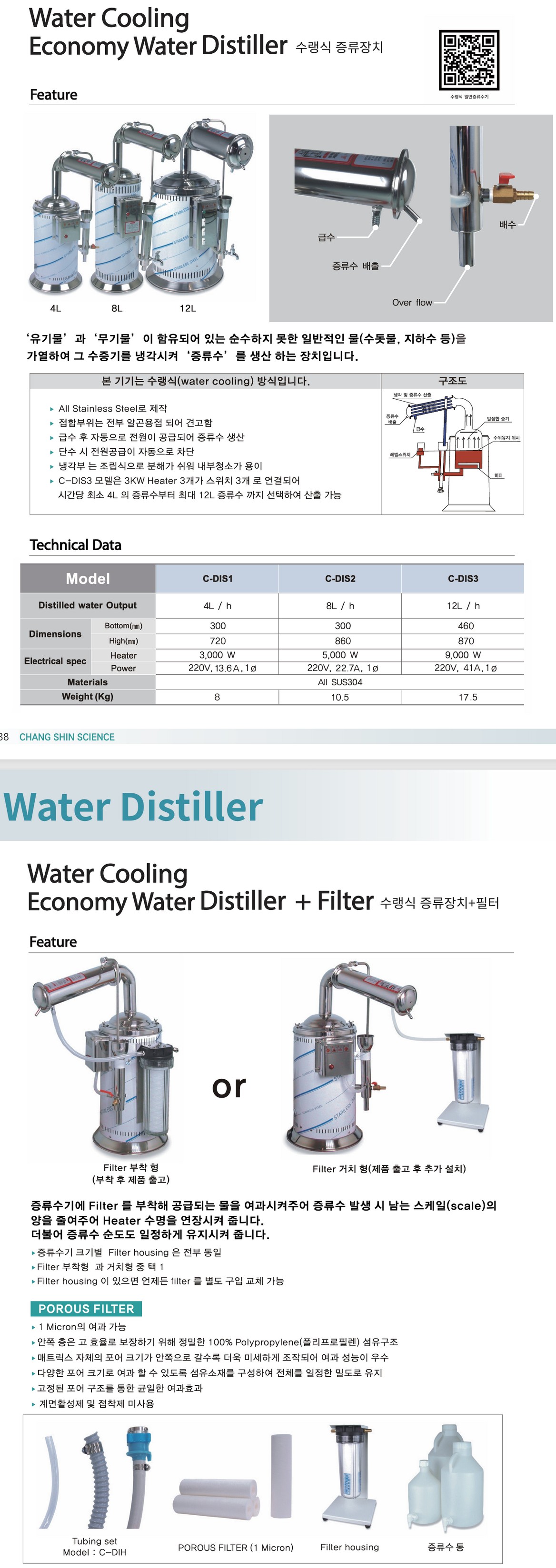 [창신과학] / Water cooling type Economy Water Still / 수랭식 일반증류수기 / C-DIS1/C-DIS2/C-DIS3