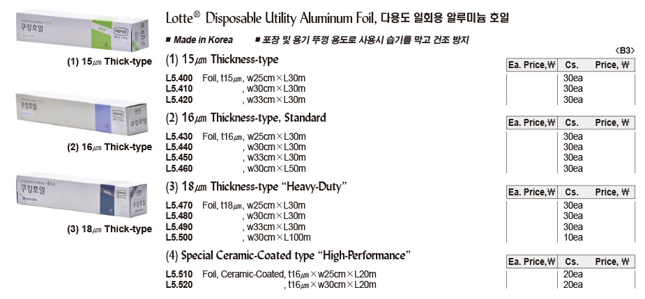Lotte® Disposable Utility Aluminum Foil, 다용도 일회용 알루미늄 호일