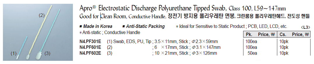 Good for Clean Room, Conductive Handle, 정전기 방지용 폴리우레탄 면봉, 크린룸용 폴리우레탄헤드, 전도성 핸들